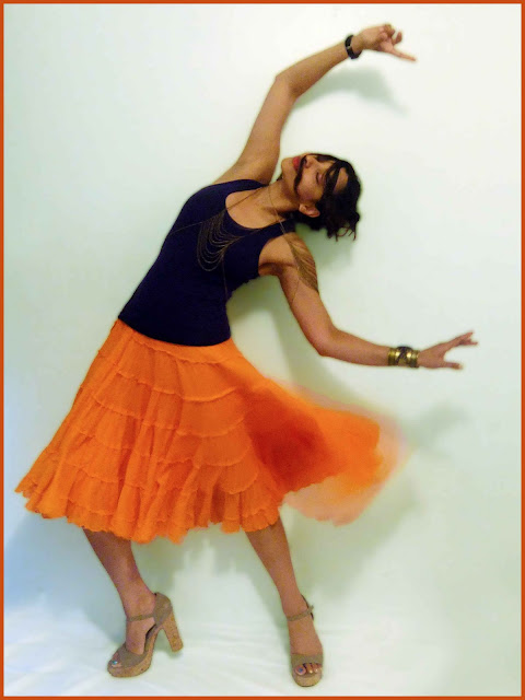 and, that arm lace is beautiful! love that orange skirt.